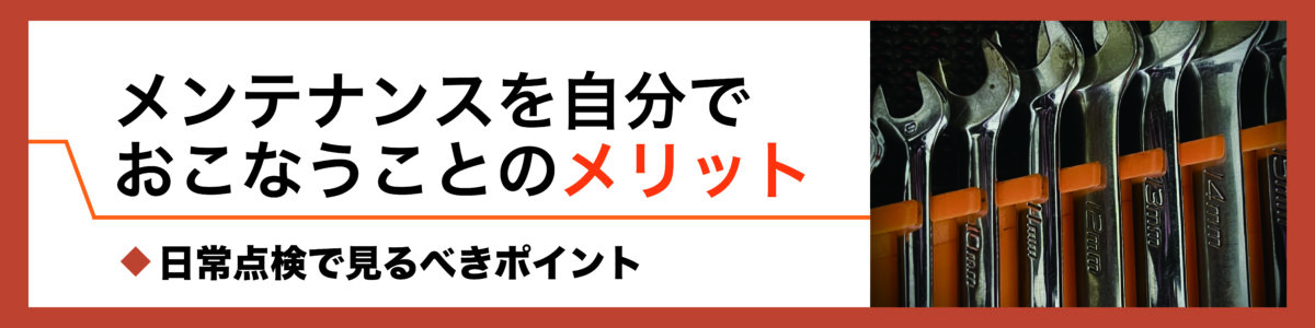 自宅で行えるメンテナンスには本人の知識や技術力によって変わってきますが、次のような日常点検は十分に可能です。