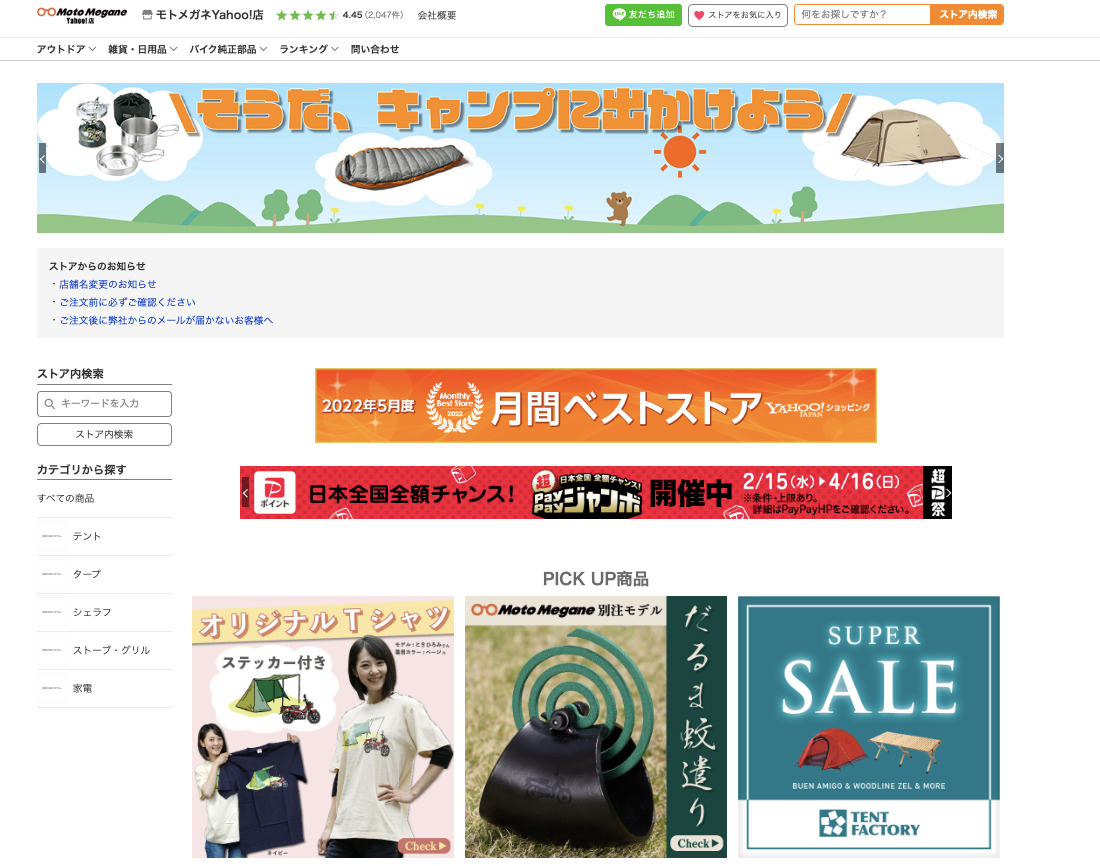 「パークアップアウトドアYahoo!店」→『モトメガネYahoo!店』に変更