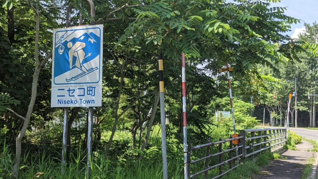 ニセコ町のカントリーサインには、スキーがデザインされています。町内には「ニセコアンヌプリ国際スキー場」や、「ニセコビレッヂ」などがあり、パウダースノーを求めて世界中から大勢の人が押しかける国際的リゾートです。そのおかげでカネゴンたちは気分上昇、地価も上昇。宿泊も食事も高く、金を持っていない人は立ち入れない雰囲気です。昔はのんびりした町だったんですけどね~。