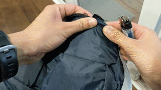ランチトートのマチの広さが、ハンドガードと同じくらいだったため、ハンドガードを取り外さずにそのままピッタリ覆うことができました。 - ランチトートのファスナーを開閉することで、袖口の開き具合を調整できる。