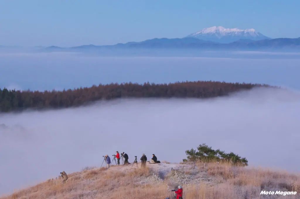 ビーナスラインの西側の麓には、松本盆地を見おろす有名な高ボッチがある。360度の眺望が開けた山頂は標高1665mで、東方向には諏訪湖に加えて条件次第では富士山を望むことができ、西方向には穂高連峰や北アルプスが広がる。神々しささえ感じるような日の出や日の入りだけでなく、夜には満点の星空が広がり、10月中旬から12月までみられる雲海も素晴らしく、シーズンには多くのカメラマンが高ボッチに集まる。