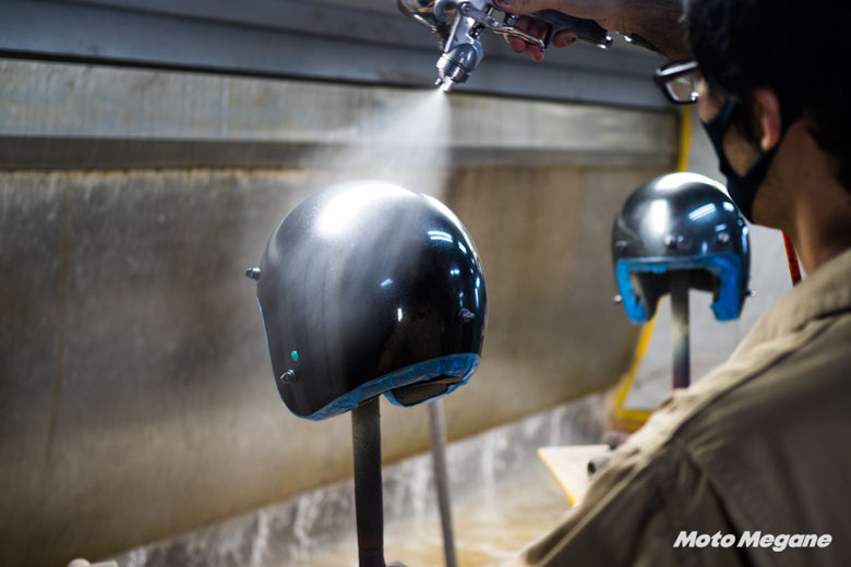 社内に常時50個は塗装中のヘルメットがあるというから生産性の向上は非常に大事というわけだ。