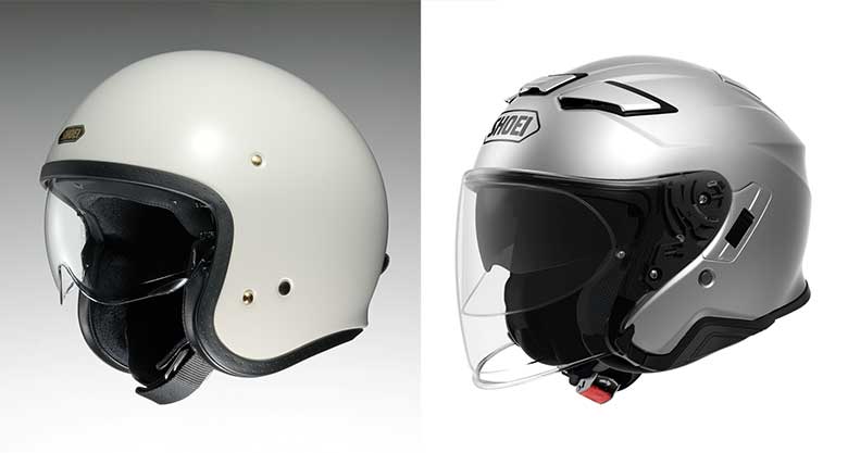 顔面部分はオープンに、前頭葉から後頭部まで覆うのがこのジェットヘルメットです。走行風から顔を守るシールドが脱着タイプのクラシカルなものと、上の写真右側のようにスライドオープンできるシールド標準装備型の2タイプがあります。愛車のタイプや利便性に合わせて好みのモデルが選べる幅広さが特徴です。決して速く走るわけではないハーレーやアメリカンバイクはクラシカルなテイストが似合うことから、愛用するオーナーが多いジェットヘルメット。手がけているメーカーの数はフルフェイス以上です。