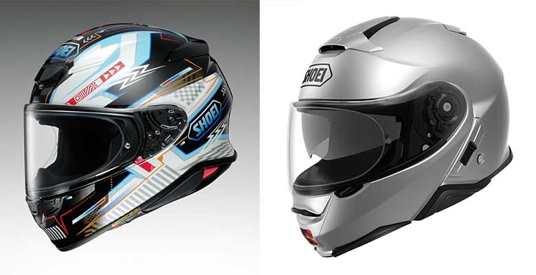 その名のとおり、頭から顎まで覆い尽くすタイプのフルフェイスヘルメット。上記写真右側のように、顔面を覆っている部分が開閉するシステムヘルメットと呼ばれるタイプもあり、総じてフルフェイスタイプに分類されます。安全性という点では他のタイプよりも優れており、世界最高峰のバイクレース MotoGPで使用されているものからクラシック系モデルまで幅広くラインナップされています。