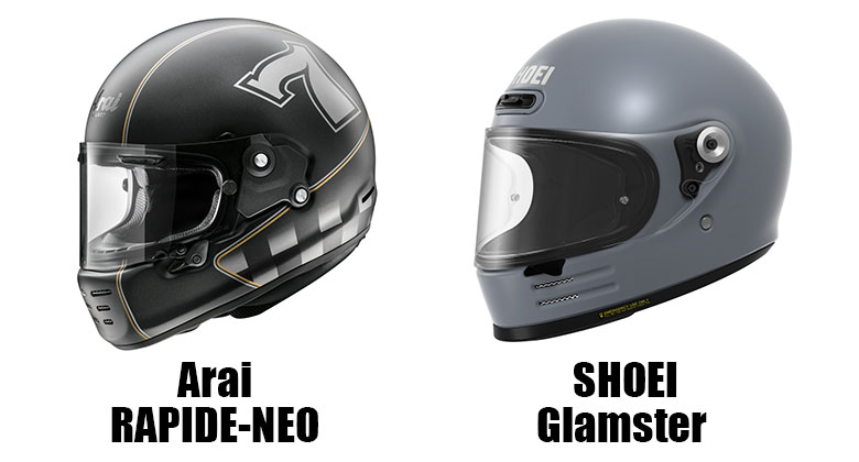 機能・デザインともに最先端を行く日本の2大ヘルメットメーカー、アライとショウエイ。近年のクラシックブームを取り入れた各メーカーの往年の復刻モデルとして、アライ RAPIDE-NEO(ラパイドネオ)とショウエイ Glamster(グラムスター)がドロップされ、アメリカンバイクのテイストともベストマッチなことから再び注目を集めています。いずれも最新機能が盛り盛りのヘルメットを手がけてきたメーカーながら、ラパイドネオもグラムスターも機能面は最小限にとどめ、クラシカルな風合いにとどめた仕上げとしているところが人気のポイント。それでいて帽体や内装のつくりは精巧にと、アライとショウエイらしさはしっかりと担保しているところが心憎い。