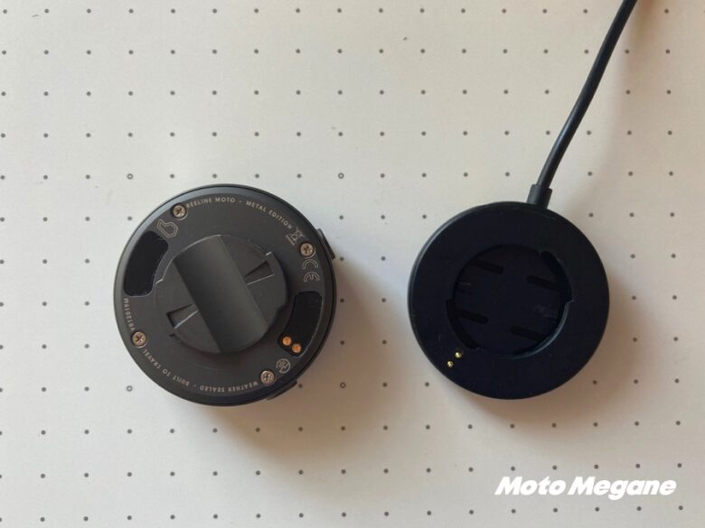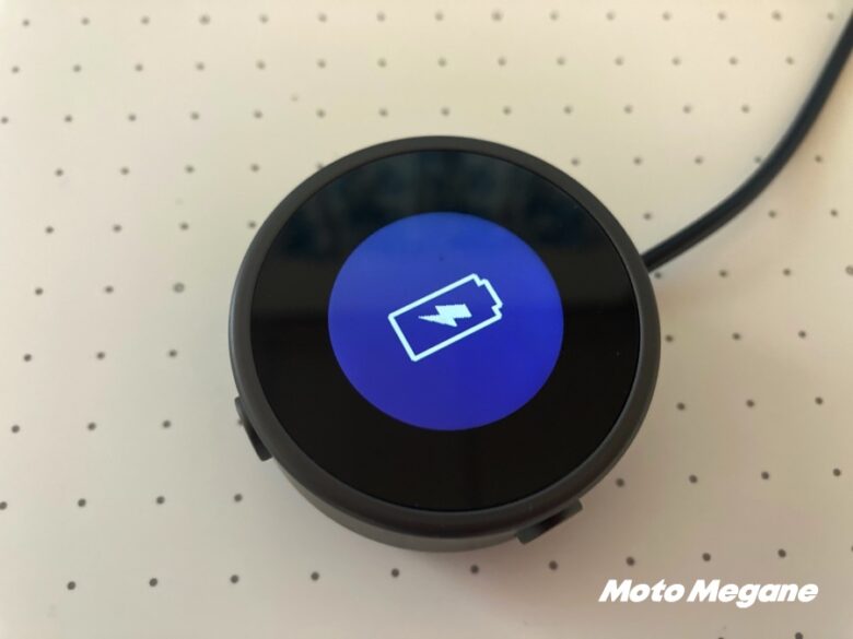 付属の充電器を適当な充電アダプターに差し込んで、本体を丸い台座に乗せてクルリンパ!と回すとロックされて充電が始まります。