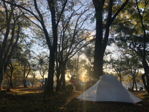 腰の部分にはサイクルジャージのようなポケットがついておりこちらは大容量。休憩時にグローブを入れておいてもいいだろう。
