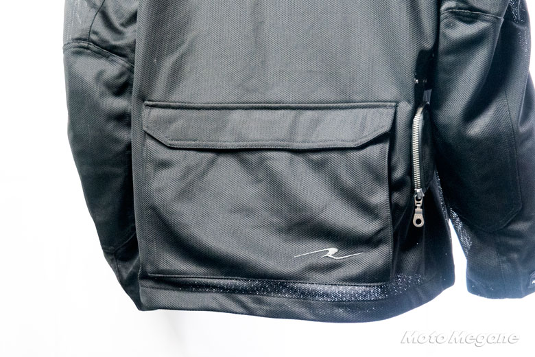 二輪メーカー製品は大きなロゴが入っている製品が多く、好き嫌いが分かれるところだが、こちらの製品は左腰脇のタグのみ。