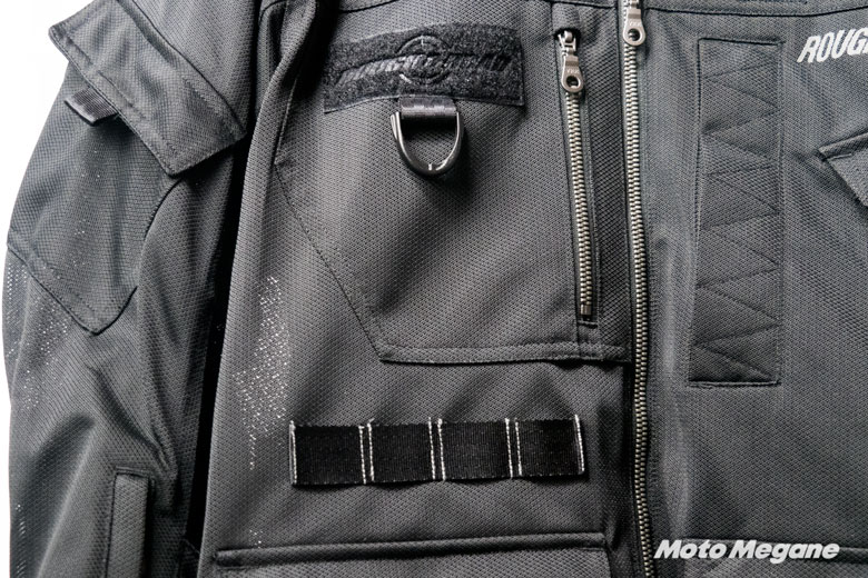 ジャケット前身ごろ右側に配されているデイジーチェーンやD環が感じさせる要因だろう。