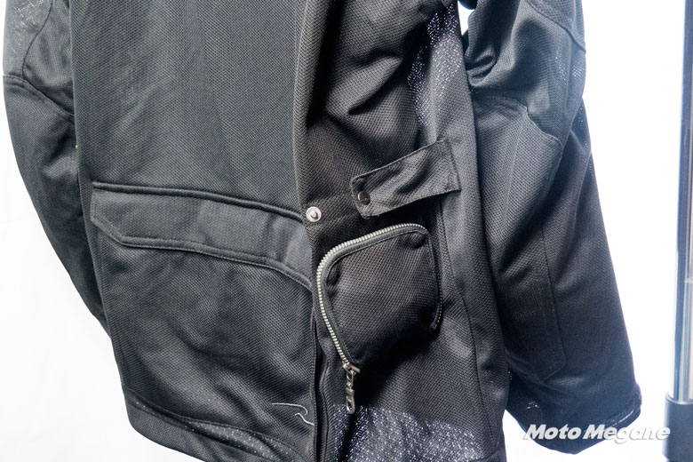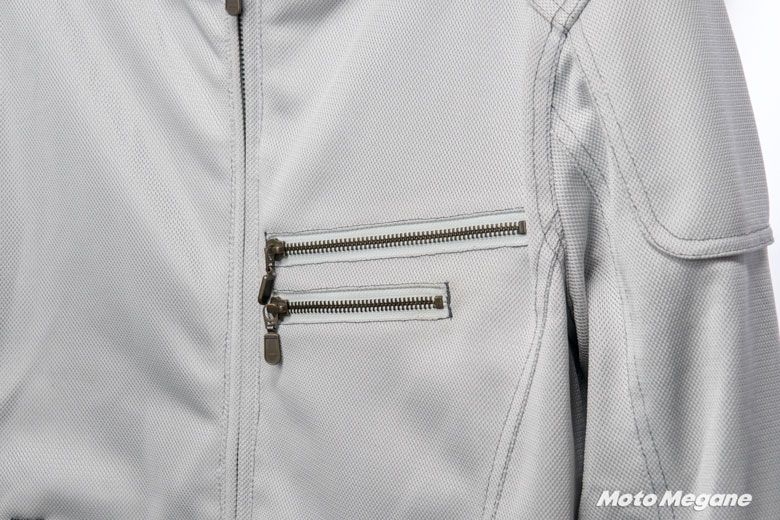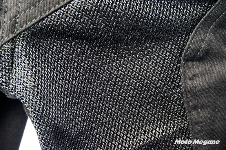表地にはスパックスメッシュNEWを採用しており、一般的なメッシュに比べて硬く丈夫な素材なので、転倒時などに擦れなどから守ってくるだろう。