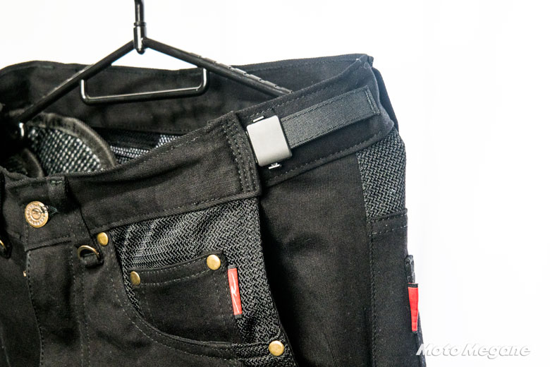 筆者は普段28インチを愛用しているので、届いた製品をそのまま履いてピッタリだったが、腰の部分のアジャスタで32インチまで広げることができる。