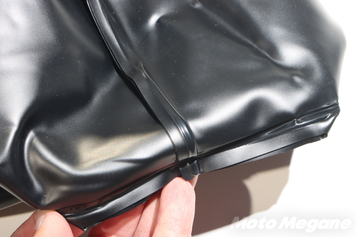 防水インナーバッグには縫い目がなく、合わせ目はすべて熱で圧着されているので水が通る隙間は存在しないのだ。
