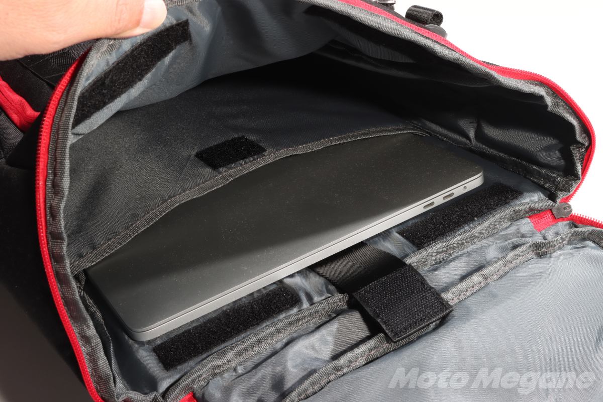 メイン気室にはクッション素材でできたノートパソコン収納ポケットを完備。
