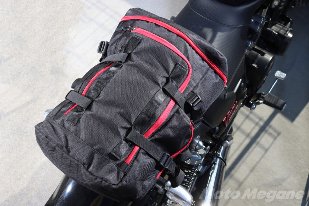 見た目はバイク以外に普段使いもできそうなカジュアルな雰囲気のナイロンバッグとなっている。