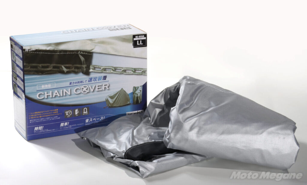 かんたん&スピーディな脱着が可能なバイクカバー「BZ955A チェーンカバー」は、いちど体験すると、その楽さに驚かされるだろう。