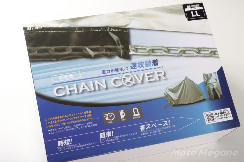 特にバイクウエアは動きにくいし、ツーリングで美味しいものをたらふく食べて大きくなったお腹ではしゃがむのも難儀する……。その点、チェーンカバーならばカバーをかけるのに無理な体勢になることもない。
