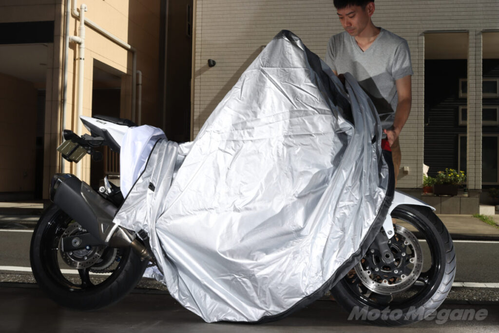 バイク盗難を抑制し、風雨や鳥の糞などから愛車を護ってくれるバイクカバーは駐車中は常にかけておきたいものである。