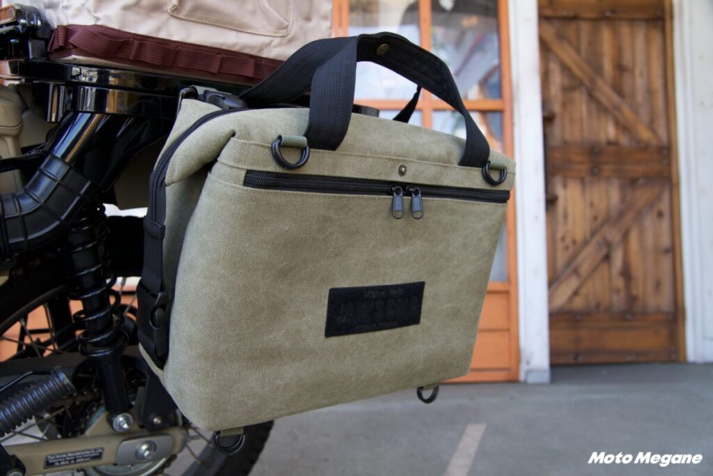 街なかでバイクから離れてバッグを持ち歩く際もサドルバッグぽくないので、ちょっと角張ったショルダーバッグぐらいの感覚で使えてしまう。