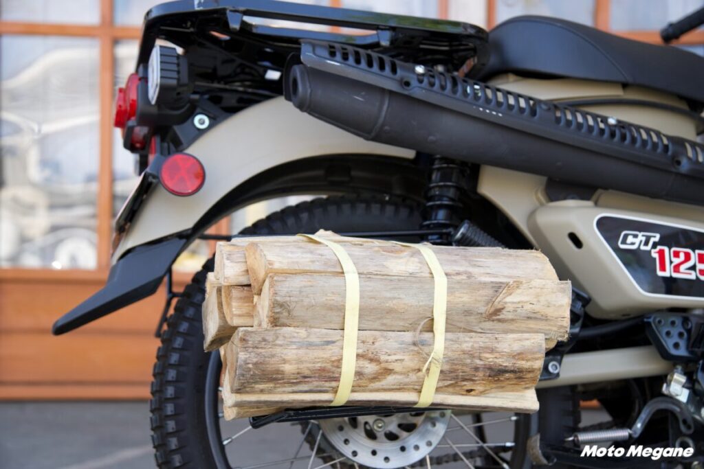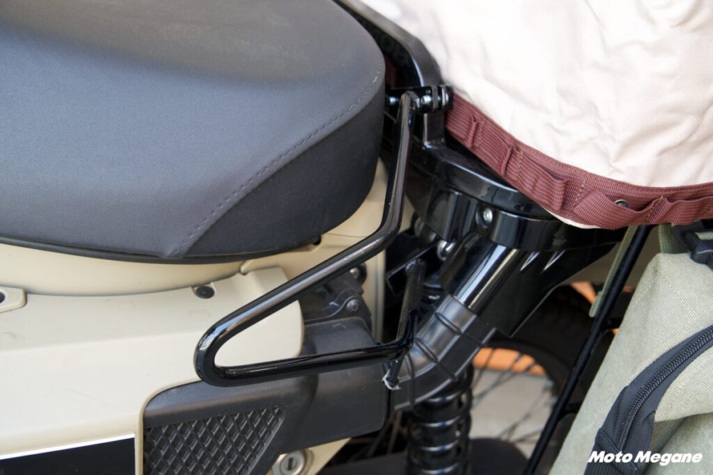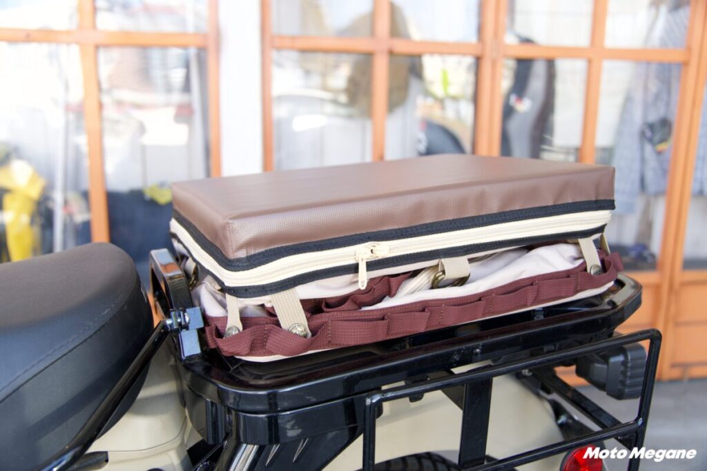 しかもそれが厚みもたっぷりなクッションになるのだ。リヤキャリアとタンデムステップはあってもクッションのないクロスカブ、ハンターカブでタンデムする時にも非常に重宝するのだ。