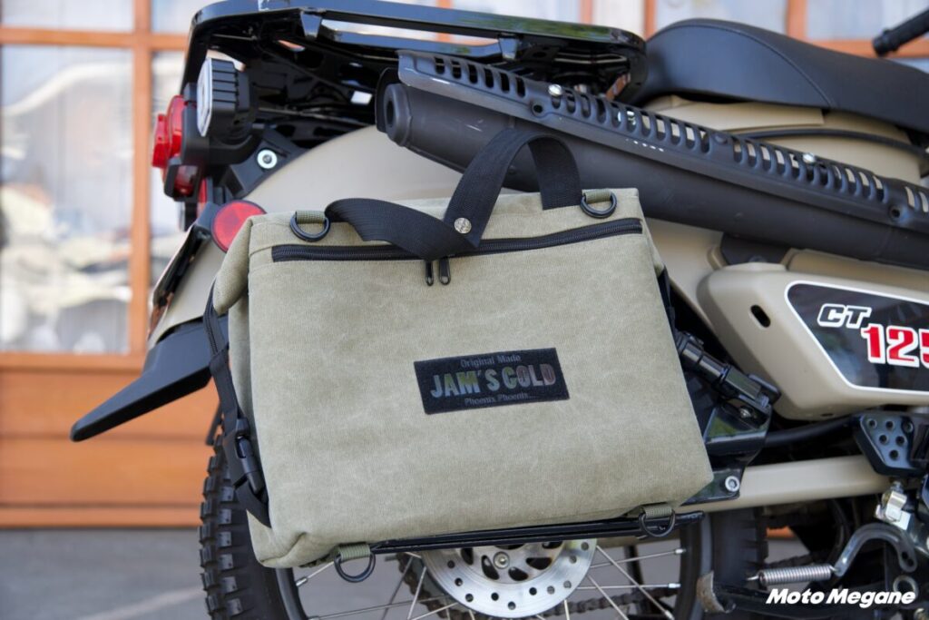 サドルバッグをサポートするサイドキャリアはJAM’S GOLD(ジャムズゴールド)からも発売されており、こちらのとセットだとより使い勝手は広がる!