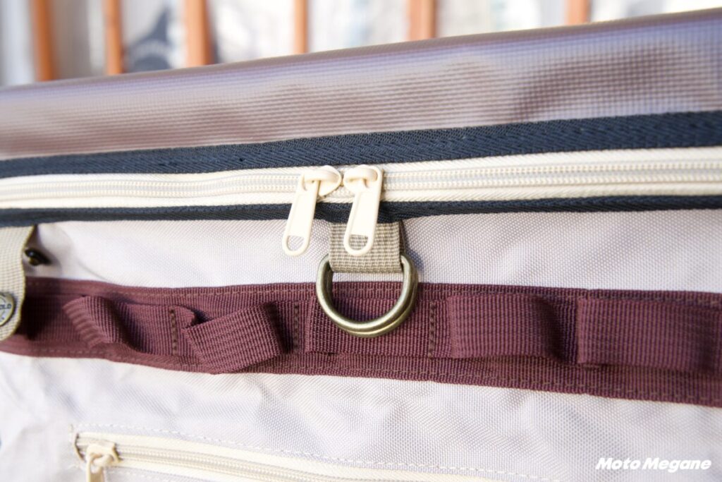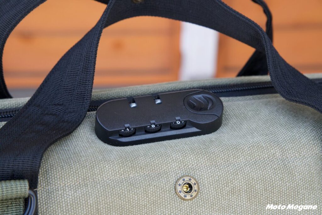 このロック機構は盗難対策としてはもちろん、走行中にバッグが不意に開いてしまうことも防げる。