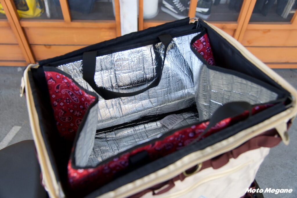 一見するとファブリック製のソフトサドルバッグ。だがバッグを開けてみれば本格的な保冷機能を持つ。