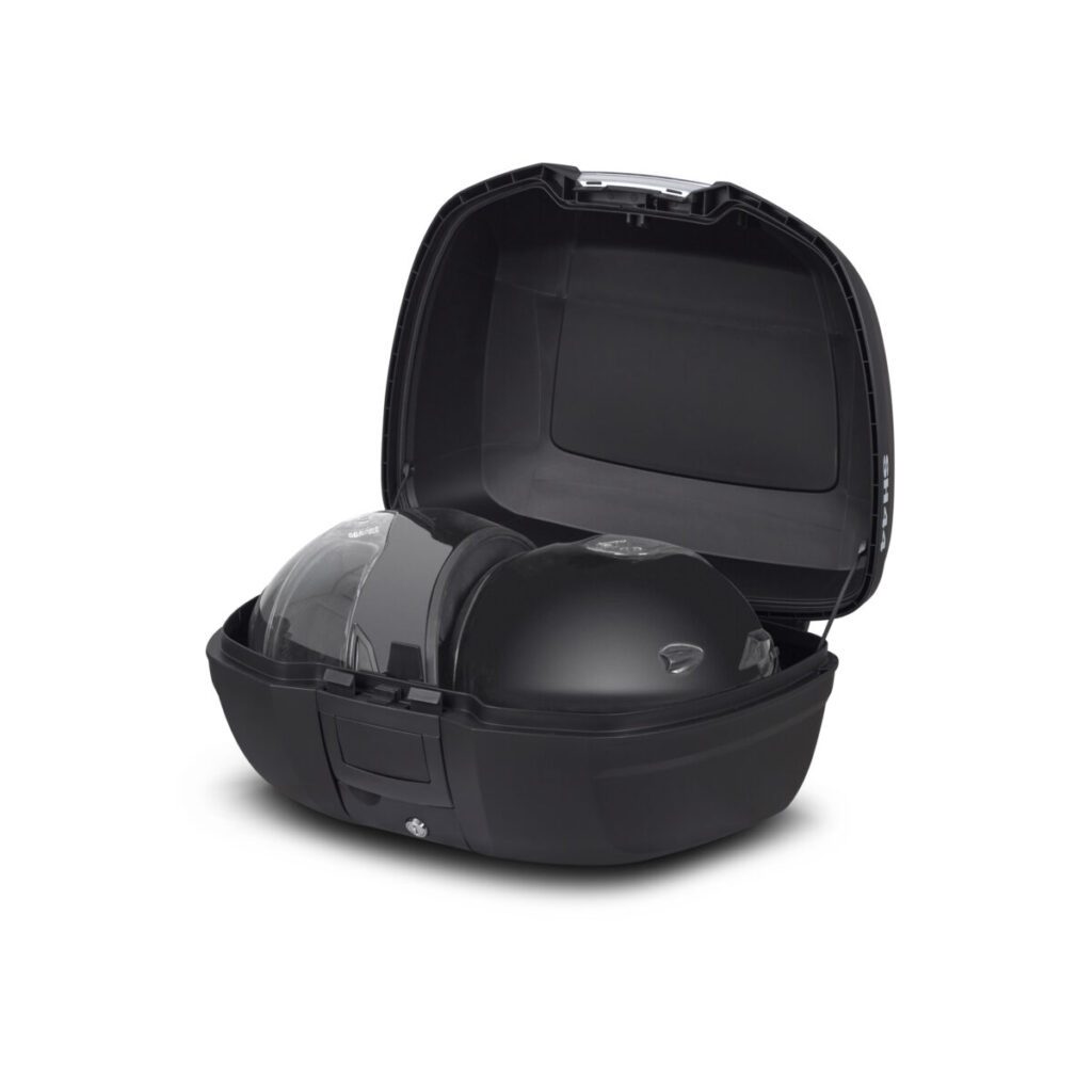 容量44Lはフルフェイスヘルメット2個を収納できるサイズ。タンデムツーリングやロングツーリングでの使い勝手のよさは抜群だ。