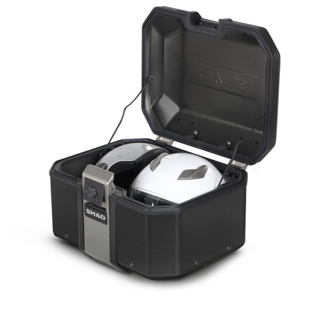 薄さ約1.2mmの硬化アルミニウム合金を使用し、ヘルメット2個を収納できるアルミケースとして最軽量を達成。側面がわずかにカーブしたデザインで、ドイツデザイン評議会のABCモビリティ・アワードを受賞している。先ほど紹介した、TR48も同様だがTERRAシリーズのケース類はアルミケースにありがちなキーロックシステムの突出がなく、さらにそのロック部分は持ち運び用のハンドルにもなる独自機能を持ち合わせているのだ。