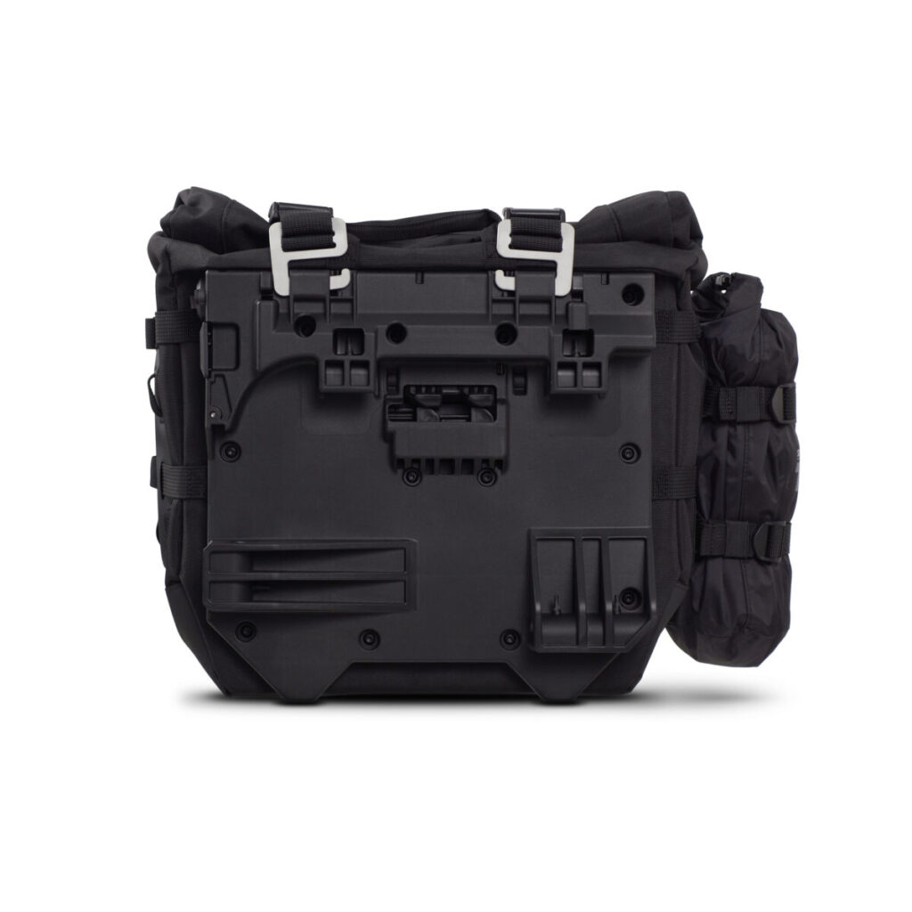 SHシリーズ最小のコンパクトさだが、片側だけで23L容量を確保。VストロームSX用フィッティングキットとセットなので、スリムな車体幅を崩すことなく、収納力を高められるサイドケース。