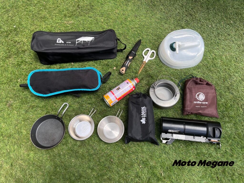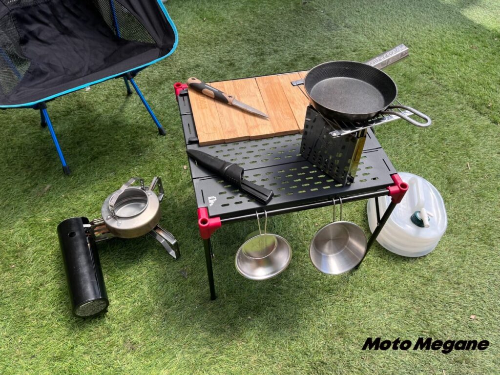 これによりリアキャリアの積載面に余裕が生まれ、空いた積載スペースに長尺もののテントやタープポール、マットなどを固定できるのだ。