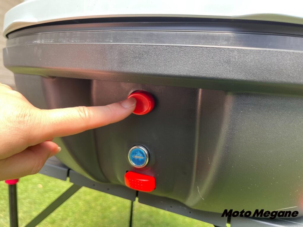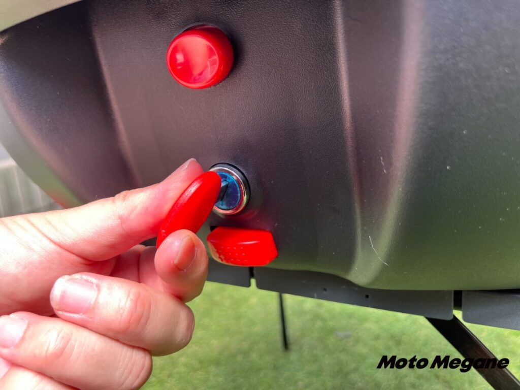 リアボックスだから当然キーロック付き。バッグと比べたら盗難の心配も低いからパーキングや駐輪場にバイクを止めていても安心だ。