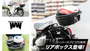 これから紹介するスーパーカブC125の純正色で塗装されたワールドウォークのリアボックスはまさにうってつけの逸品だ。