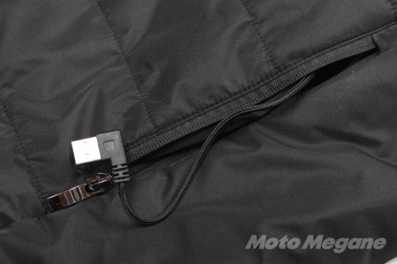 左のポケット内にUSBのコードがあるので、ここにモバイルバッテリーを接続します。