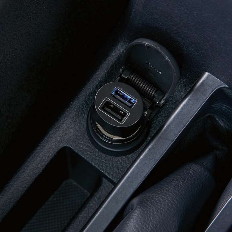 USBポートを2ポート搭載し、スマートフォンの2台同時充電が可能。ソケットから抜けにくいすべり止めシリコン付き。