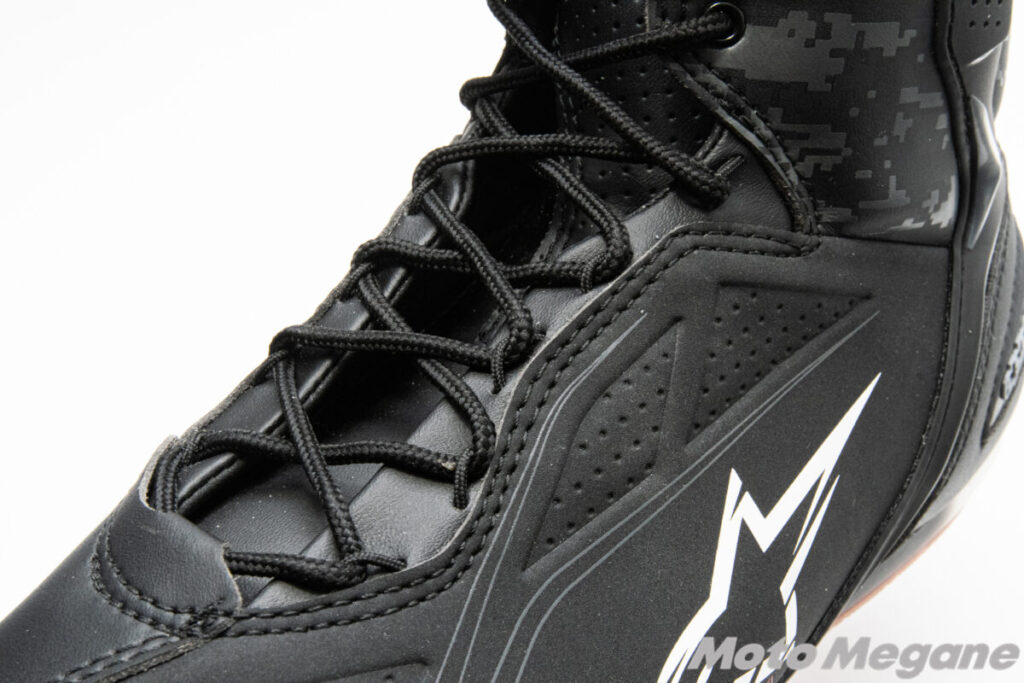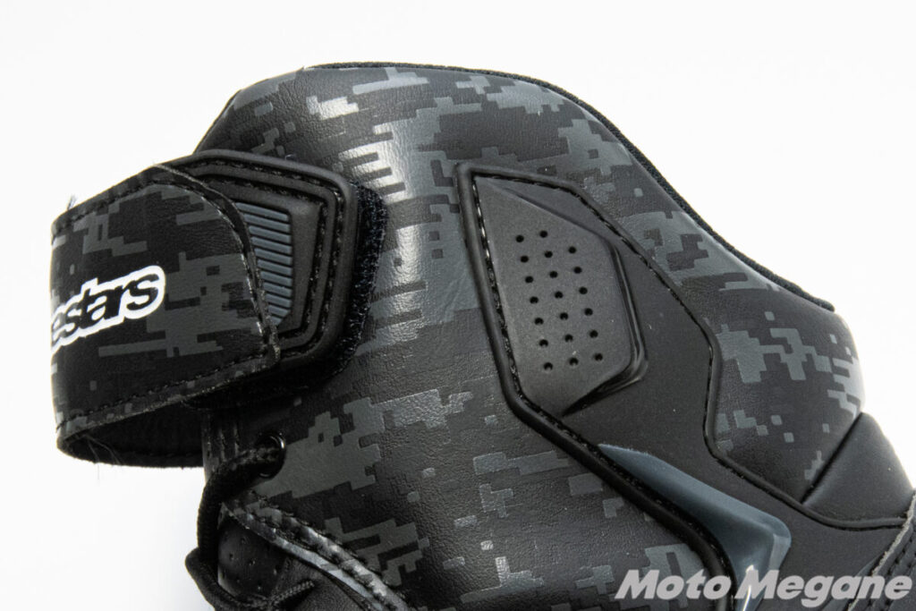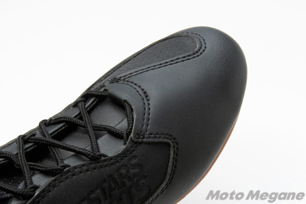 街乗りからスポーツライディング、さらにツーリングまで幅広い用途にフィットするFASTER-3 SHOE。トゥ周りでもアルパインスターズらしい機能性が盛り込まれています。
