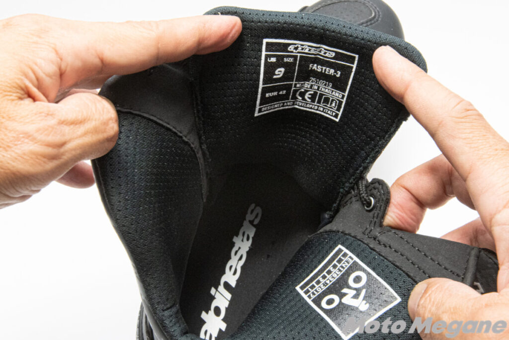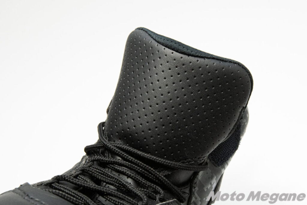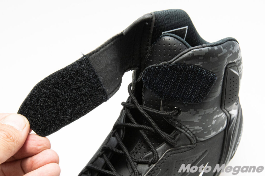 しかし、プロテクターを備えているとはいえ、シューズの内部は柔らかいナイロン素材を配置しているので、実際に足を通した際に、くるぶしに異物感を覚えることもありません。こうした設計は長年ライディングシューズやブーツを作り続けてきた老舗のノウハウが生かされています。