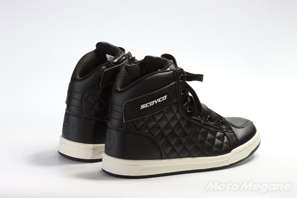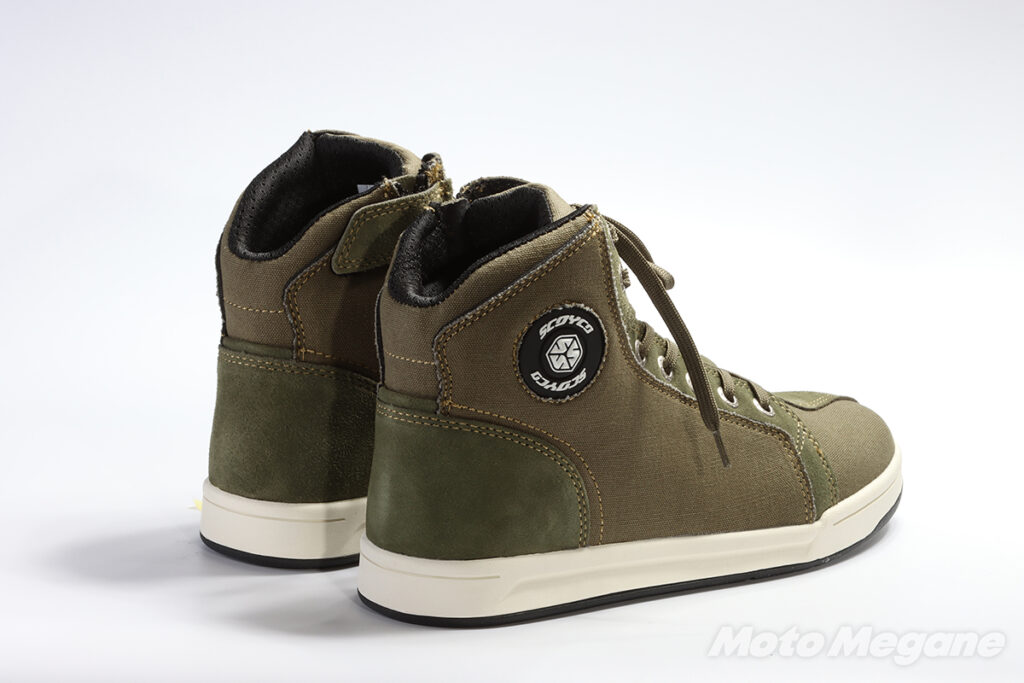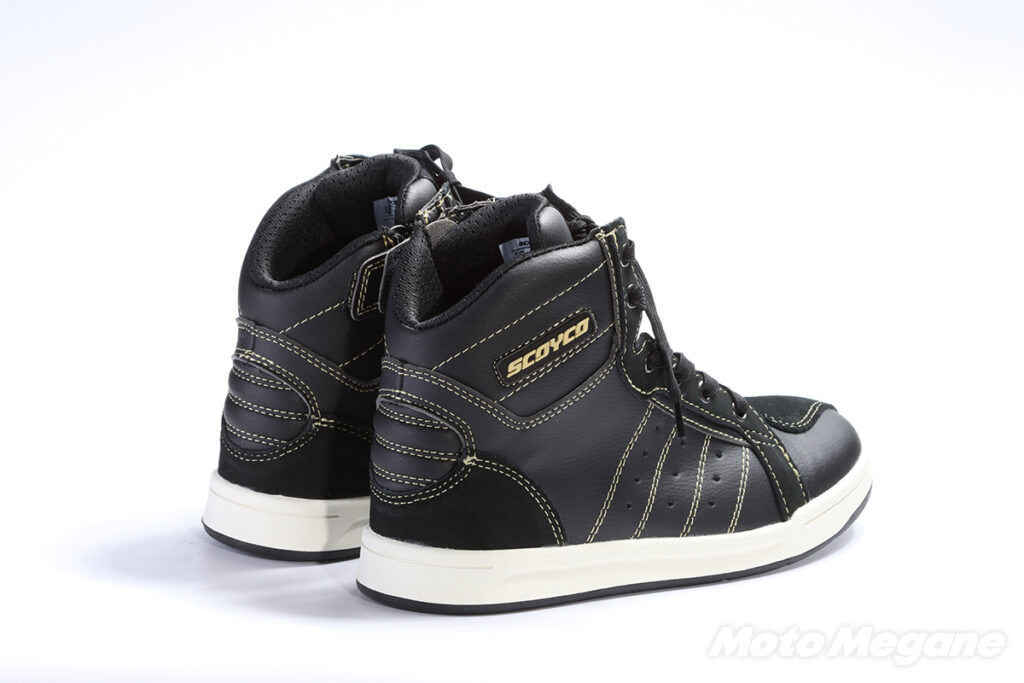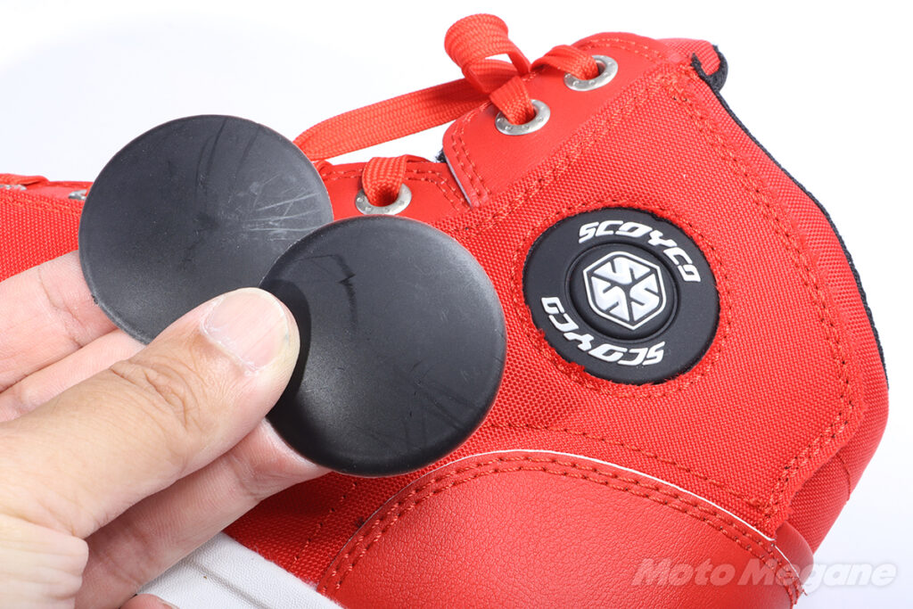 スコイコのライディングシューズはくるぶし部分の両側に樹脂プロテクターが内蔵されている。