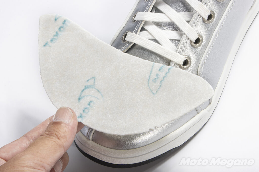 スニーカーでバイクに乗ると、傷んでしまうのがシフトペダルと接する部分だ。