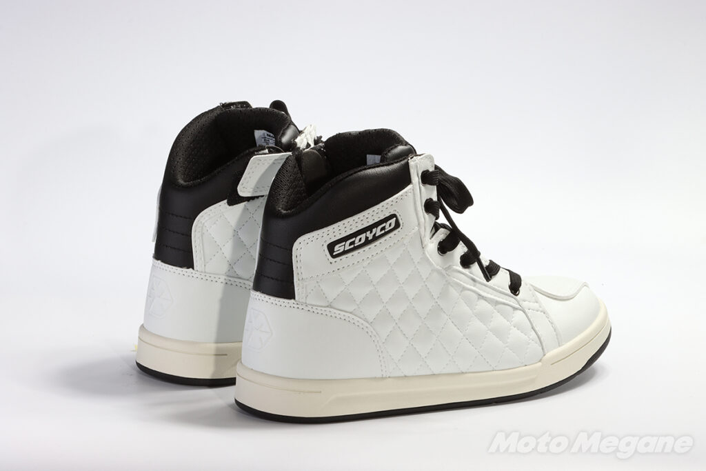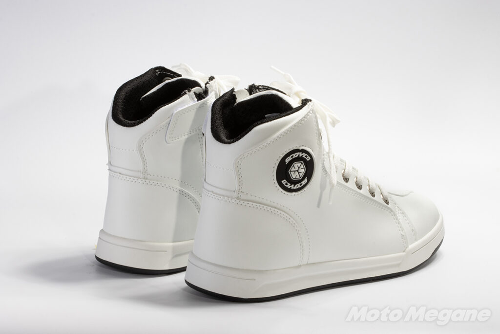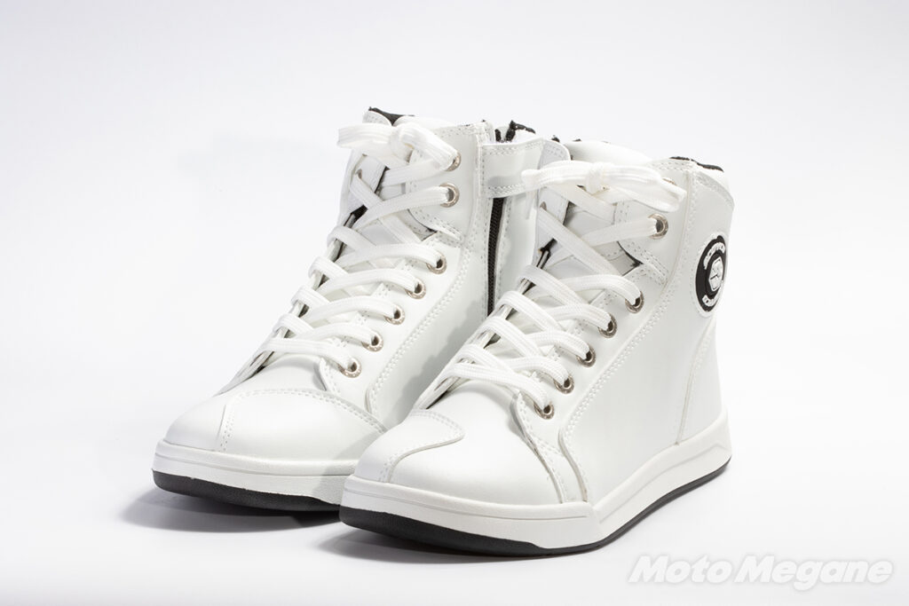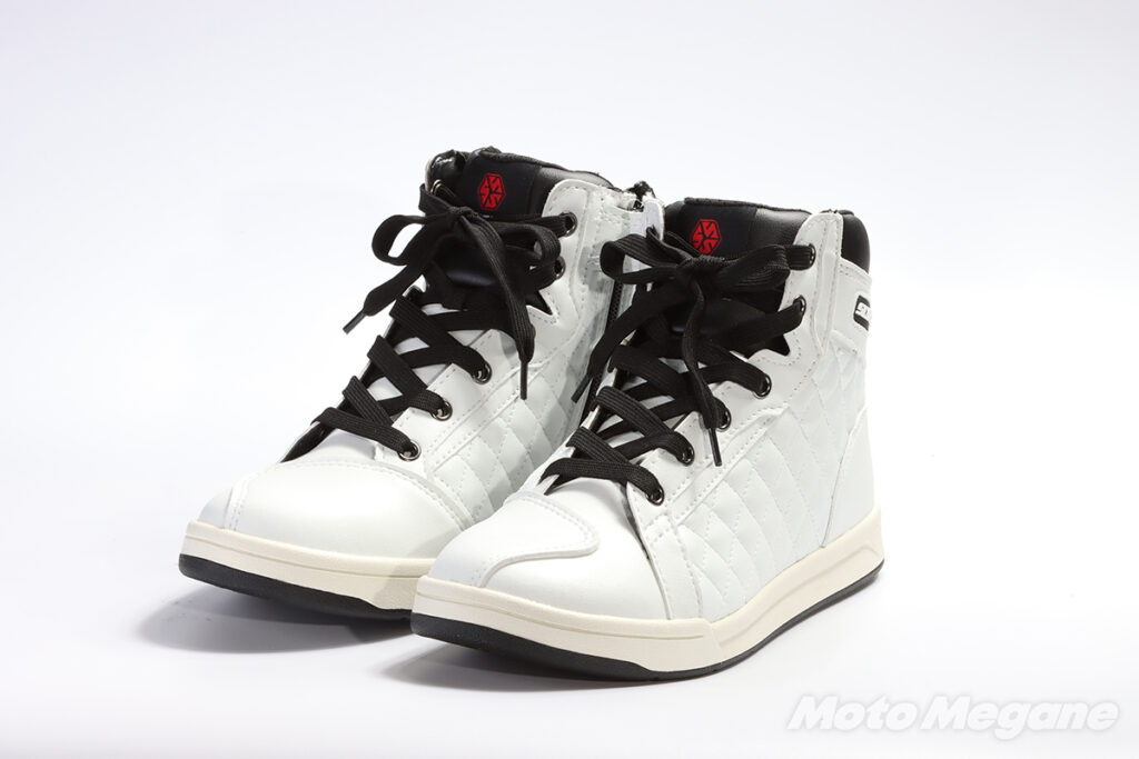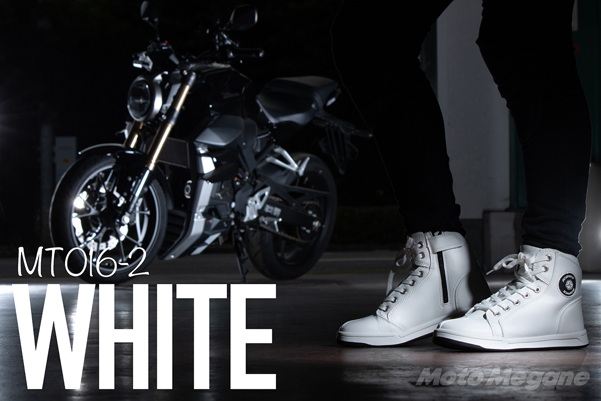 プレーンな魅力のホワイトはジーンズにも合わせやすく、バイクの車種やカラーを問わずマッチする。普段履きにも最適だ!