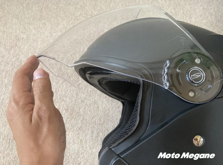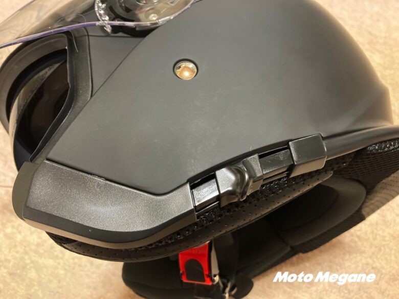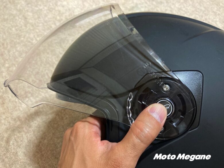 僕は普段Araiのヘルメットを被っているのですが、シールドを開ける際は左側の出っ張りを押す癖がついているので、最初はちょっと慣れなかったです。