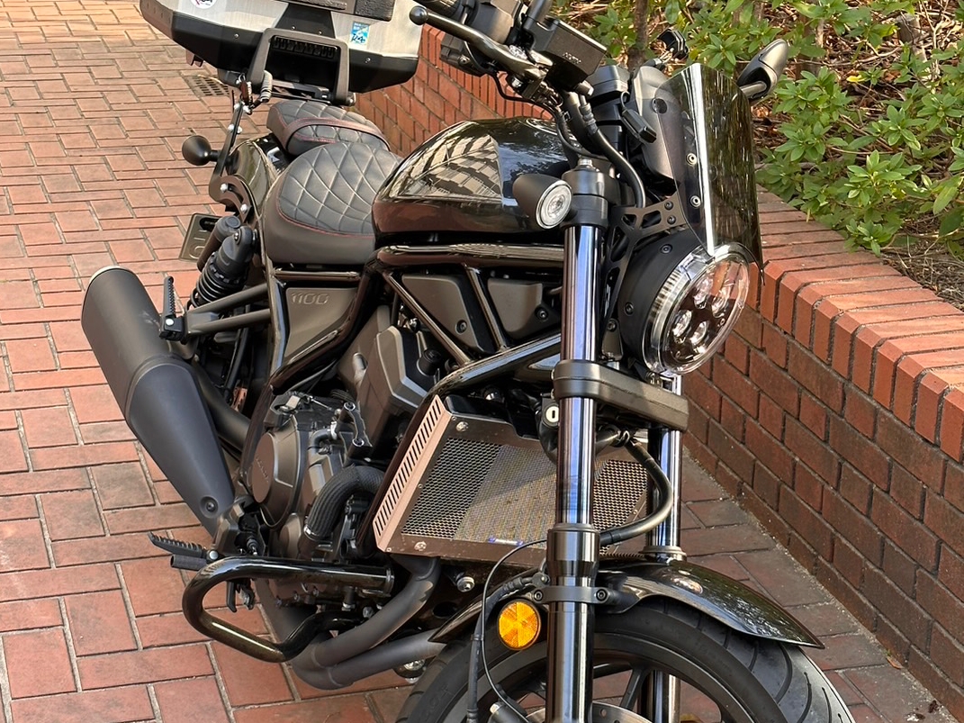 バイクシート神戸にその旨を伝え相談したところ、フロント側には滑り止め効果が期待できるエンボスレッドをオススメされました。フロント側とリア側で異なる素材を使うことでシングルシートを意識しています!」。