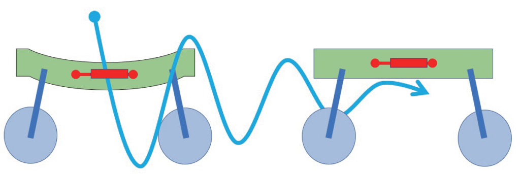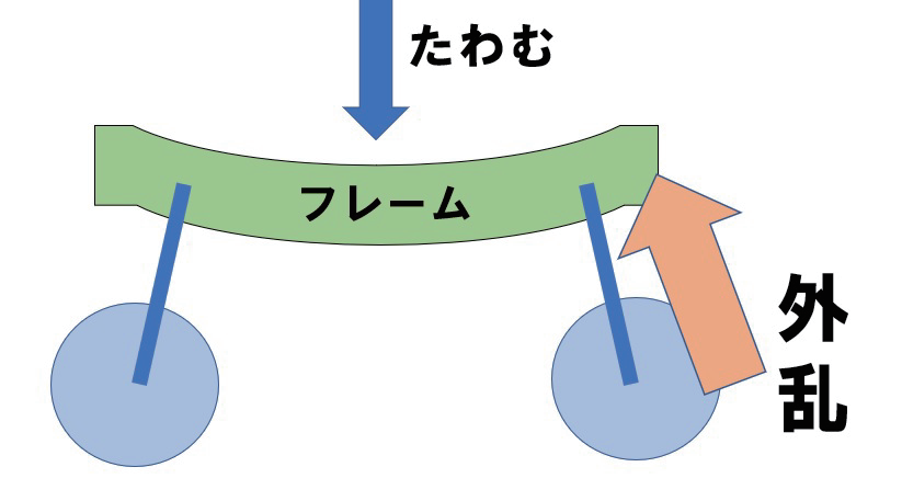 フレーム自体は金属なのでスプリングのように伸び縮みはしませんが、たわんだりゆがんだりしながらスプリングと同じように振動し続けています。そこでフレームをスプリングと考えて、フレームの振動を収縮させようとしたのがパフォーマンスダンパーなのです。