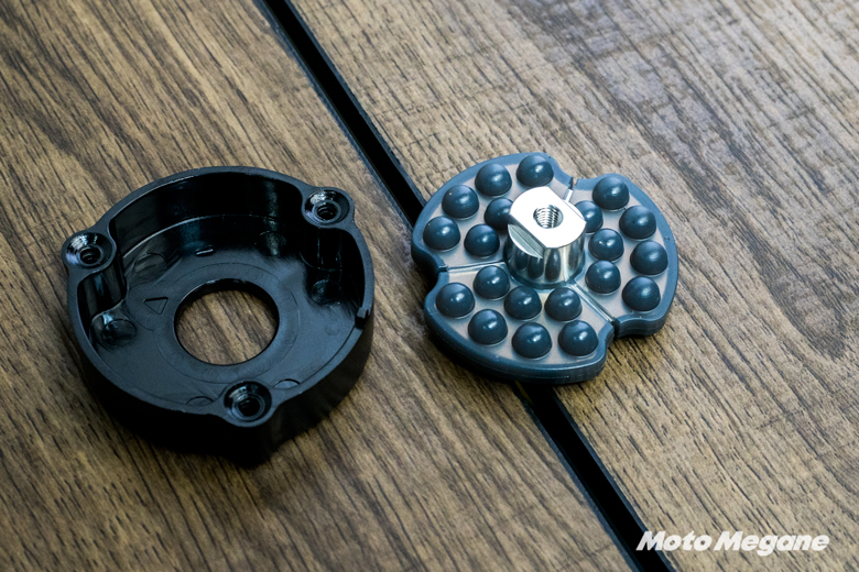 スマホホルダーに追加で組み込むことでバイク特有の振動や路面からの衝撃を幅広くカバーしてカメラ機能を守るという。