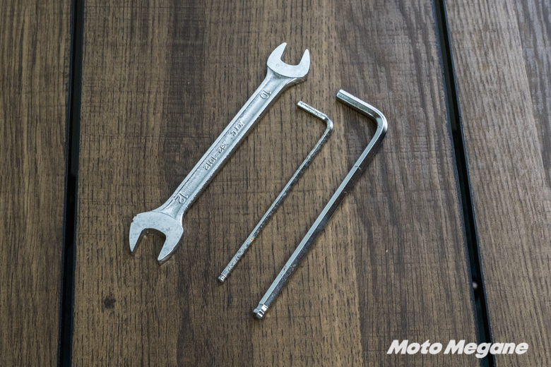 持ち手の長い六角レンチを使うか、六角レンチで抑えてスパナ側で回すとやりやすいだろう。