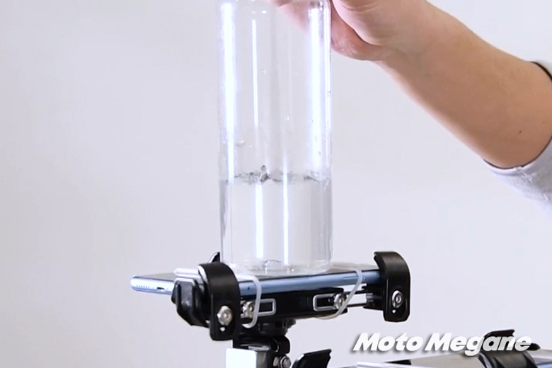 写真のようにスマホを外向きに装着してインカメラを起動。アイドリング、空ぶかし、走行の3つのシチュエーションで試してみたので結果をシェアしたい。
