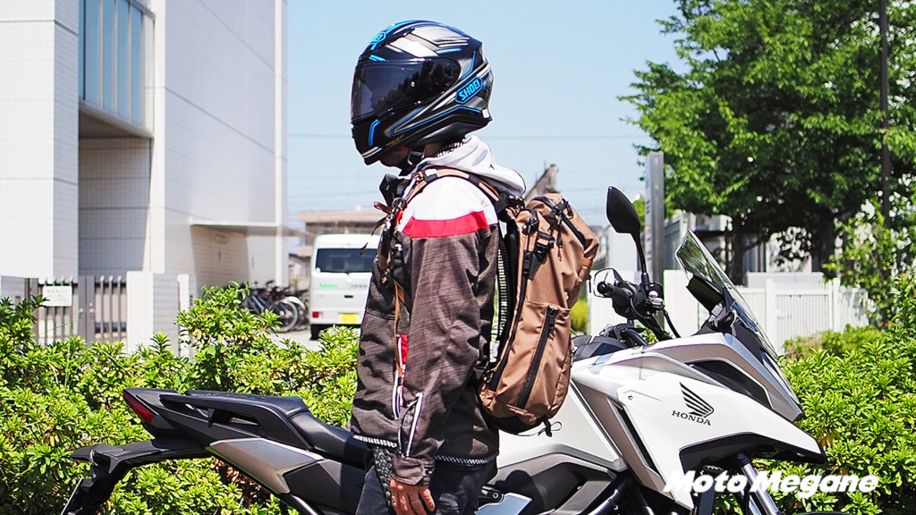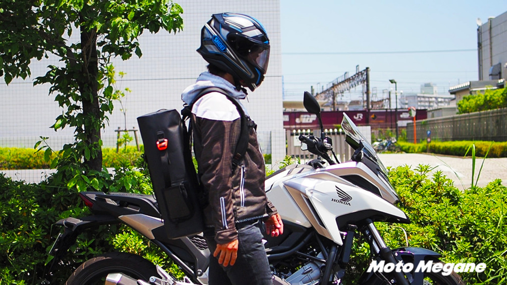実際にリュックを背負ってバイクで走行してみました。