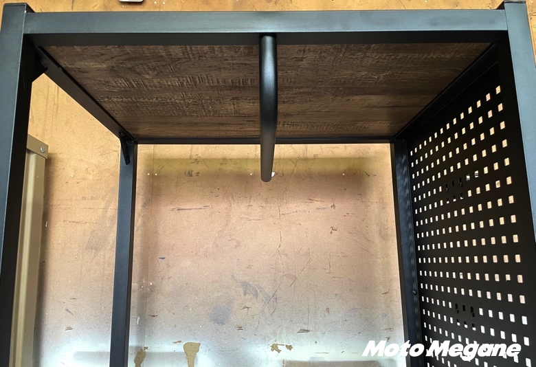ライダーズギアハンガーは上から「ヘルメット置き場、ジャケットハンガーポール、小物収納スペース、ブーツ置き場、引っ掛けコーナー(横)」から構成されています。