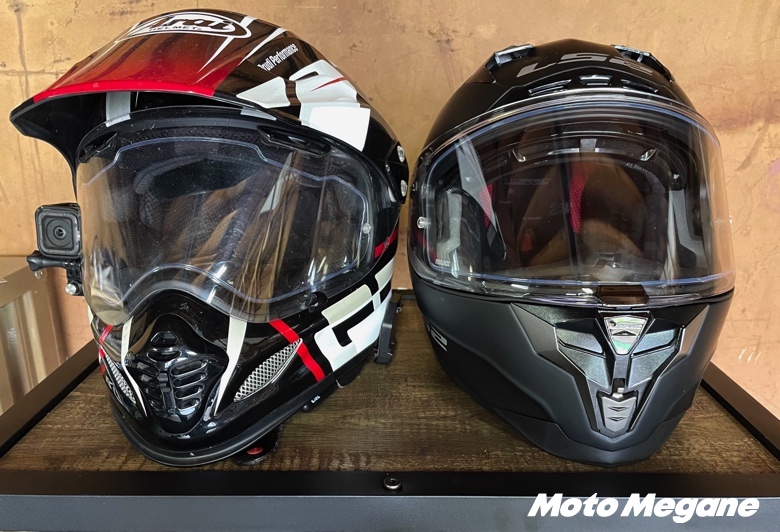 ヘルメット置き場はフルフェイスを2つ置ける広さで、転落防止のための段差がついています。