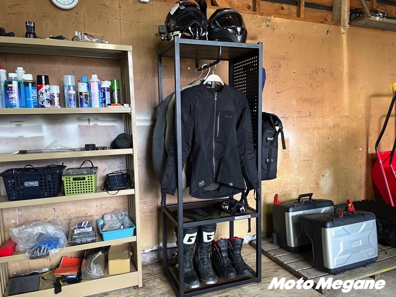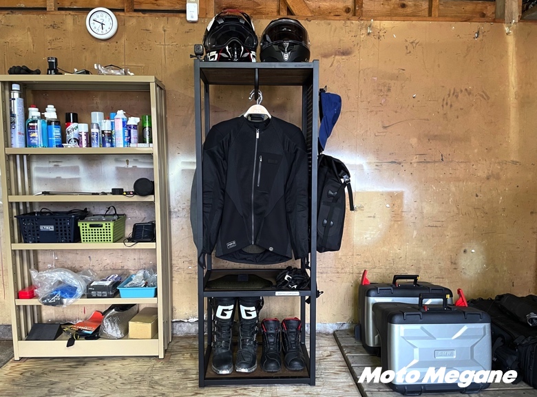 東大阪に拠点を置くバイク用品メーカー「ドッペルギャンガー」がリリースしている「ライダーズギアハンガー」は、ライディングギアをまとめて収納できる「見せる収納棚」です!