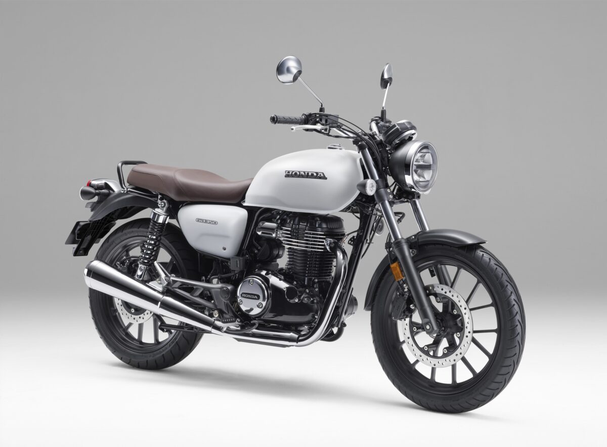 GB350は、カラーリングにカジュアルなイメージの「マットパールグレアホワイト」を新たに設定し、継続色の「マットパールモリオンブラック」と、「マットジーンズブルーメタリック」とあわせた、全3色設定としています。また、リアサスペンションのスプリングをブラックに変更する事で、より引き締まった足まわりを演出しています。